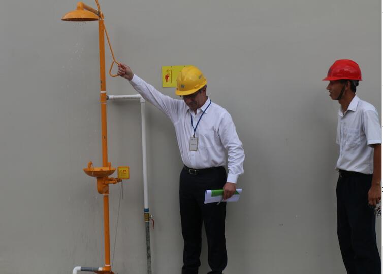 李跃新经理通过PPT全面介绍青田供水二期项目的情况。并带领他们实地参观了沉淀池、滤池、泵房、配电房、氯库和中控室,他们对该项目总体设计、先进的生产工艺、先进设备的配置及项目职安健管理工作等方面给予了充分的肯定。一边巡视一边就职安健管理工作等问题进行交流和现场提问,陪同人员一一解答,同时还提出了一些富有建设性的意见和建议,要求项目管理人员抓紧推进项目建设,按市政府要求的时间节点,按时保质完成。