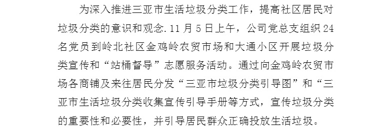 公司组织党员开展 垃圾分类宣传和“站桶督导”志愿服务活动